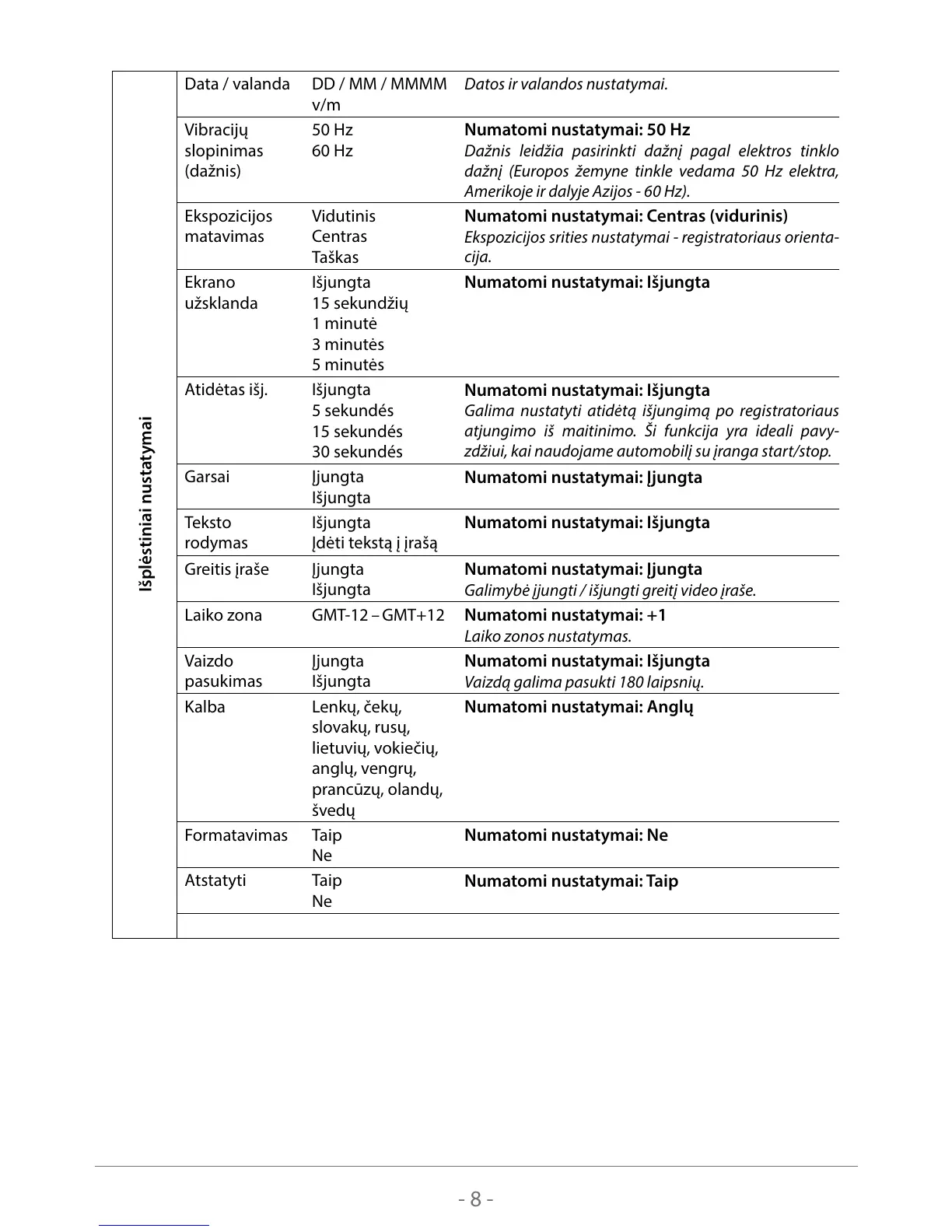 Numatomi nustatymai: Išjungta