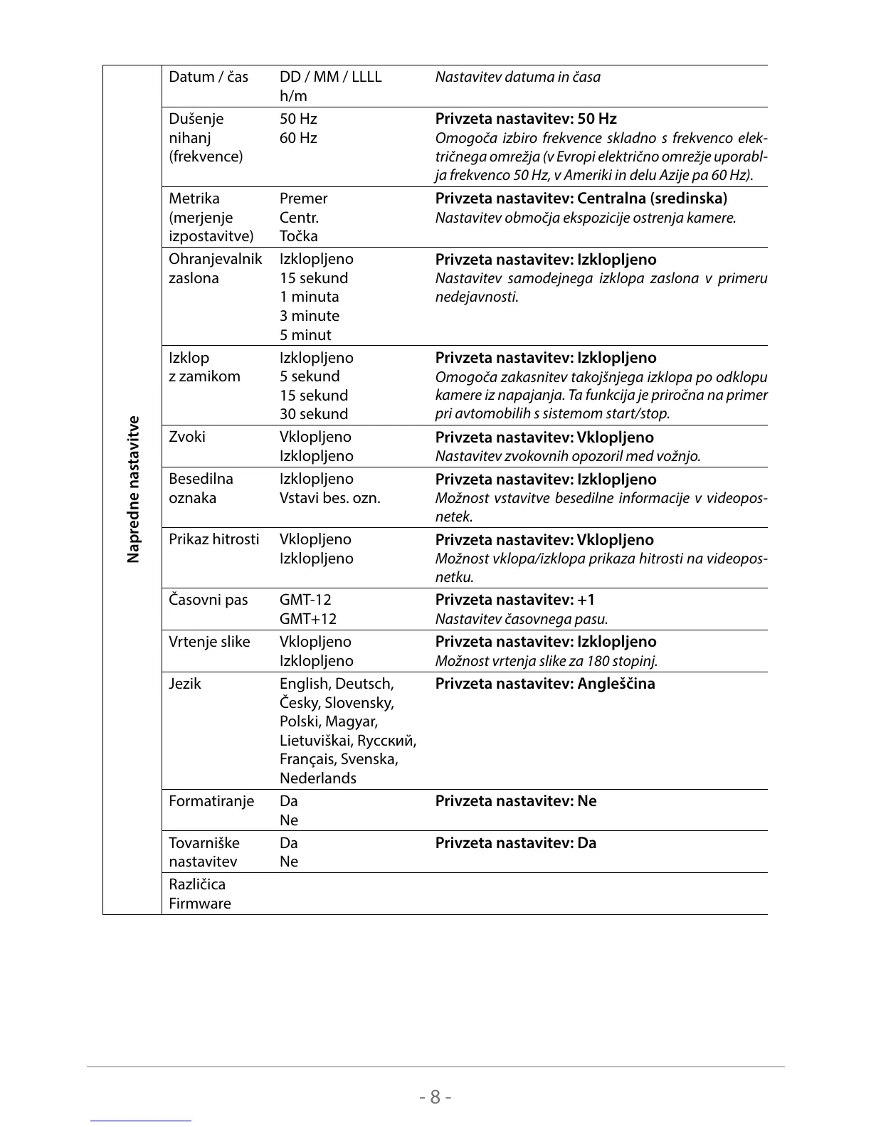Privzeta nastavitev: Angleščina
