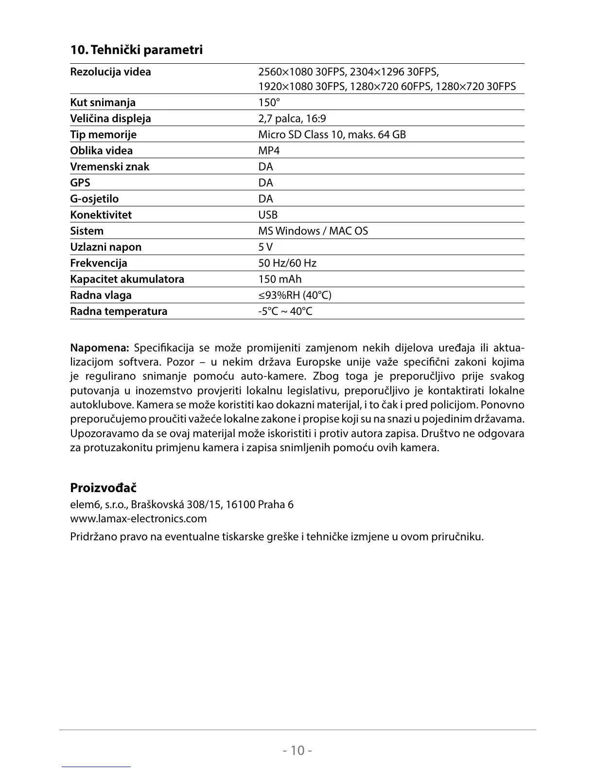 je regulirano snimanje pomoću auto-kamere. Zbog toga je preporučljivo prije svakog