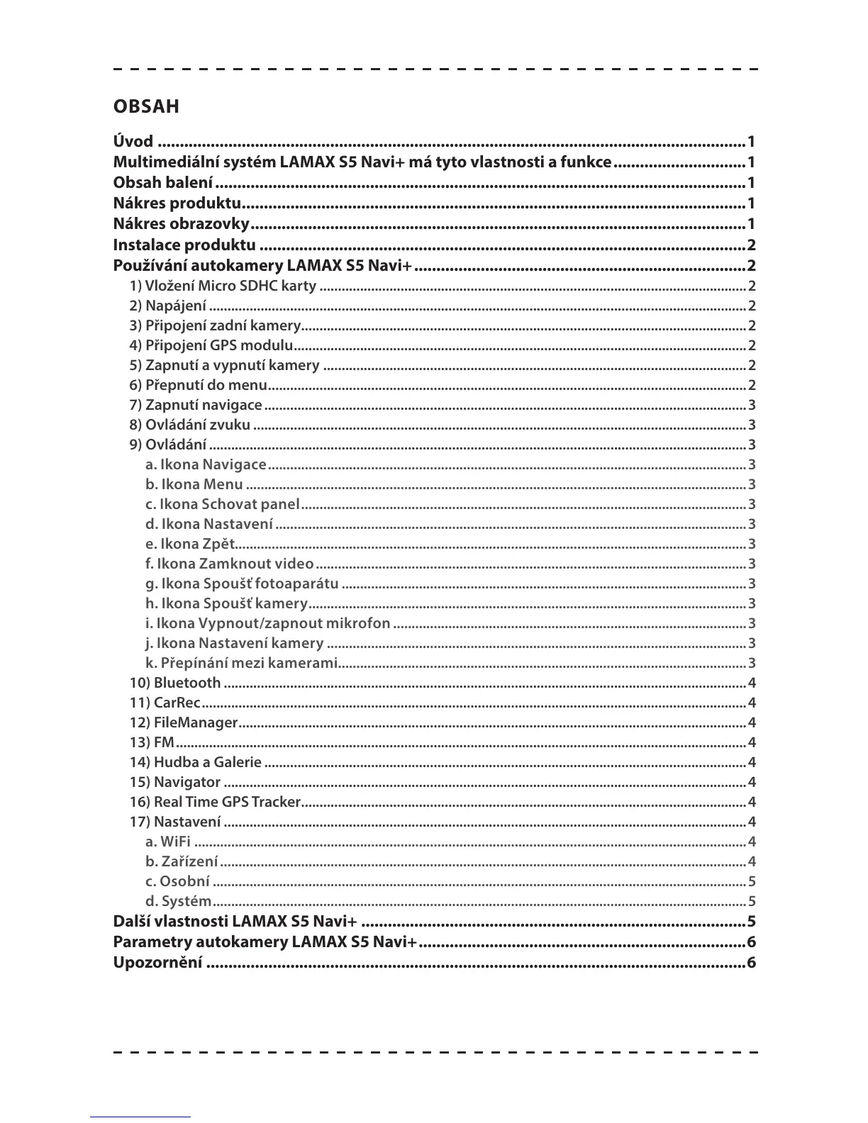 Multimediální systém LAMAX S5 Navi+ má tyto vlastnosti a funkce ..............................1