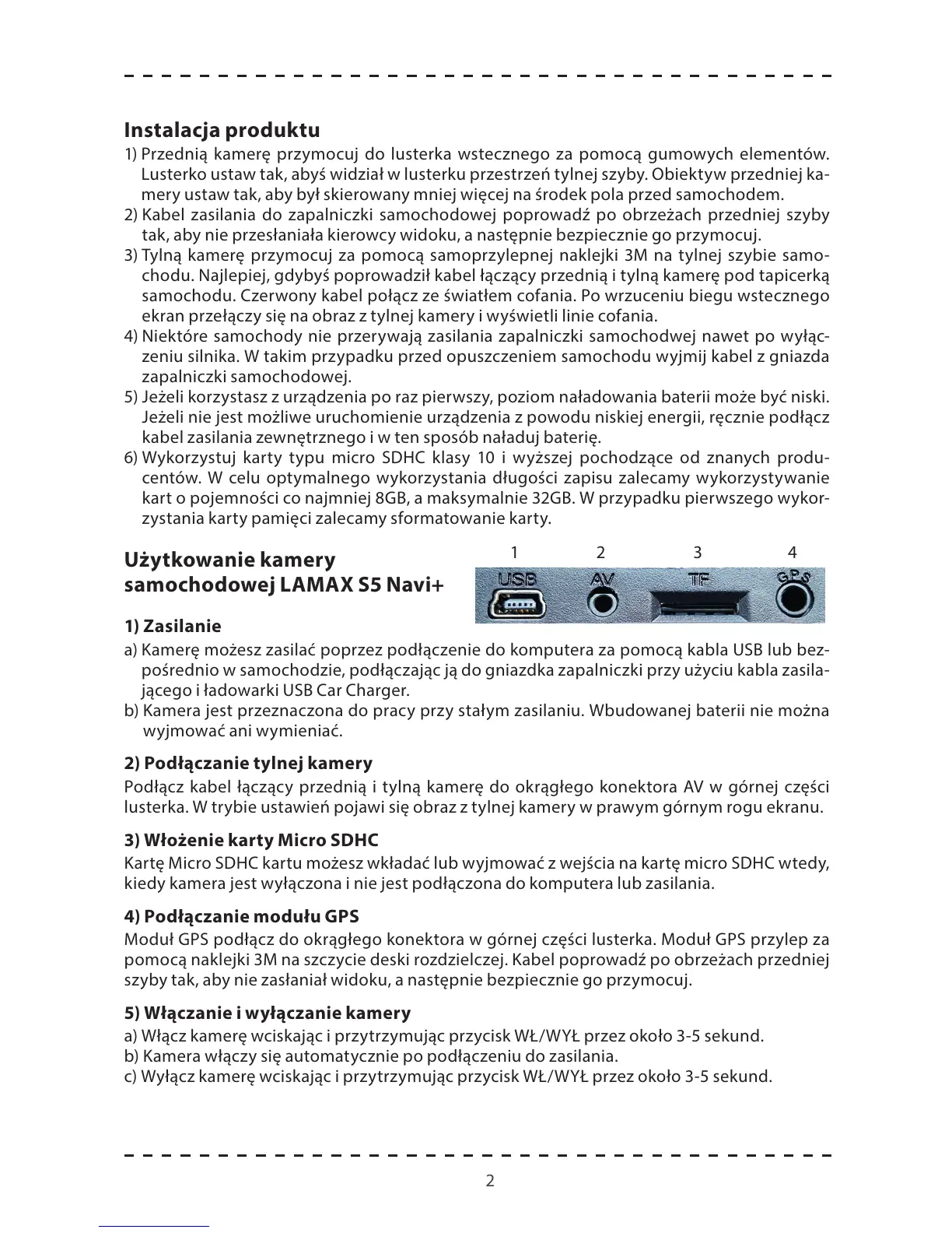 2) Kabel zasilania do zapalniczki samochodowej poprowadź po obrzeżach przedniej szyby