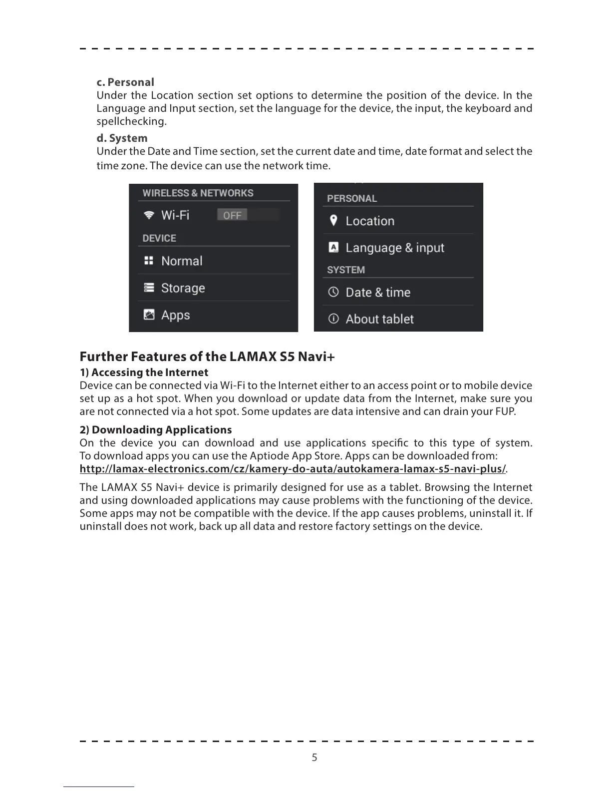 The LAMAX S5 Navi+ device is primarily designed for use as a tablet. Browsing the Internet