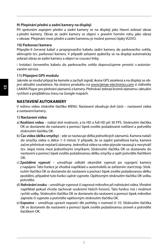do smyčky videa o délce 1–5 minut. V případě, že se zaplní paměťová karta, kamera