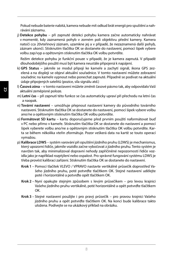 p) Kalibrace LDWS – systém varování při opuštění jízdního pruhu (LDWS) je mechanismus,