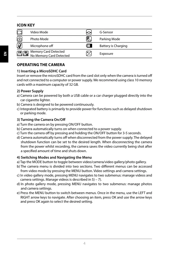 a) Tap the MODE button to toggle between video/camera/video gallery/photo gallery.