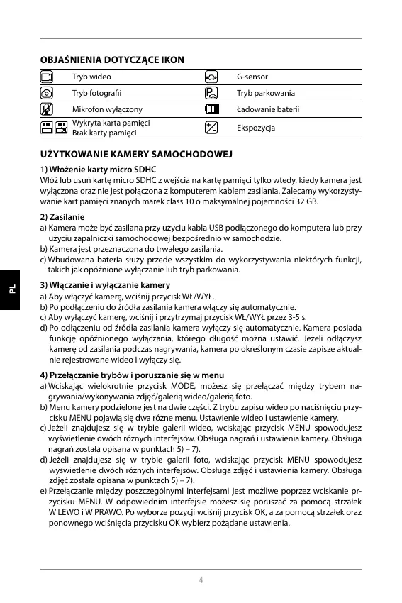 UŻYTKOWANIE KAMERY SAMOCHODOWEJ