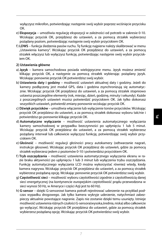 e) Głośność – możliwość regulacji głośności pracy autokamery (odtwarzanie nagrań,