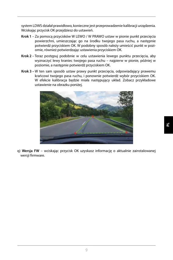 system LDWS działał prawidłowo, konieczne jest przeprowadzenie kalibracji urządzenia.