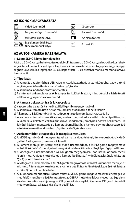 a) A MODE gomb rövid megnyomásával válthat a videofelvétel / fényképezőgép / videó-