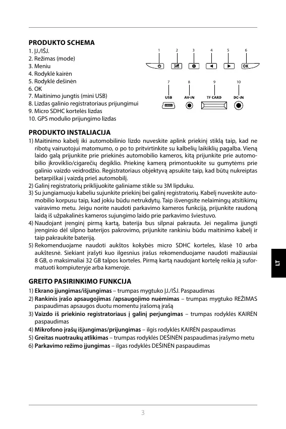 5) Rekomenduojame naudoti aukštos kokybės micro SDHC korteles, klasė 10 arba