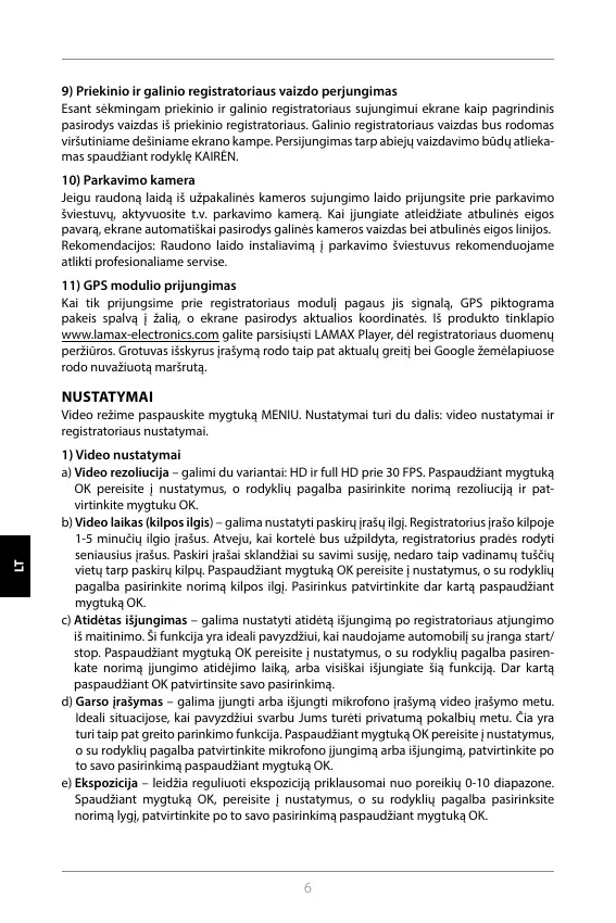 a) Video rezoliucija – galimi du variantai: HD ir full HD prie 30 FPS. Paspaudžiant mygtuką