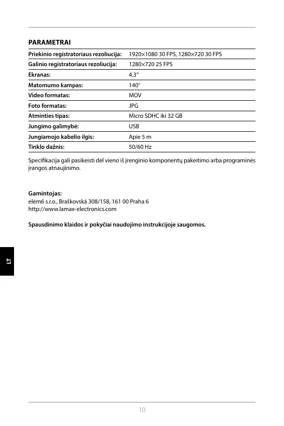Specikacija gali pasikeisti dėl vieno iš įrenginio komponentų pakeitimo arba programinės