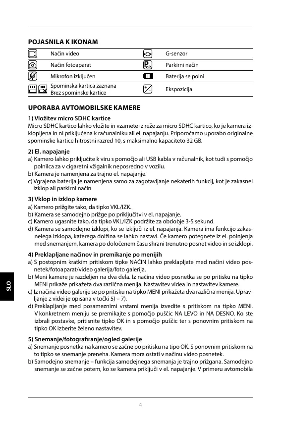 snemanje se začne potem, ko se kamera priključi v el. napajanje. V primeru avtomobila