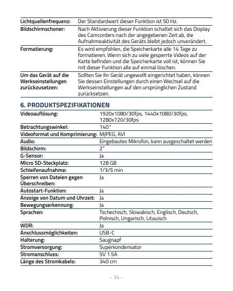 Es wird empfohlen, die Speicherkarte alle 14 Tage zu