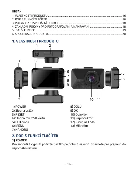 2. POPIS FUNKCÍ TLAČÍTEK ..................................................................................................................16