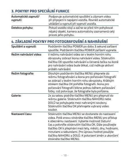 3. POKYNY PRO SPECIÁLNÍ FUNKCE