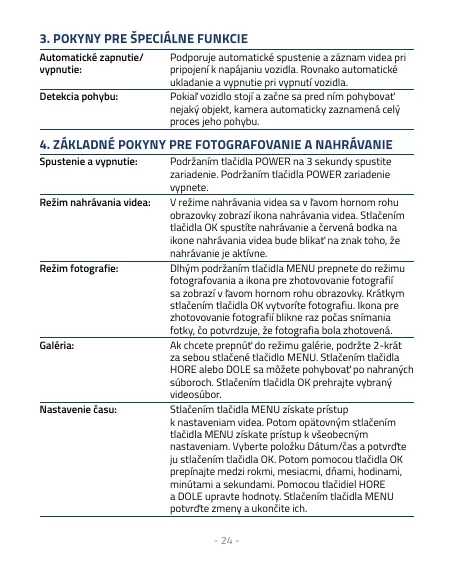 3. POKYNY PRE ŠPECIÁLNE FUNKCIE