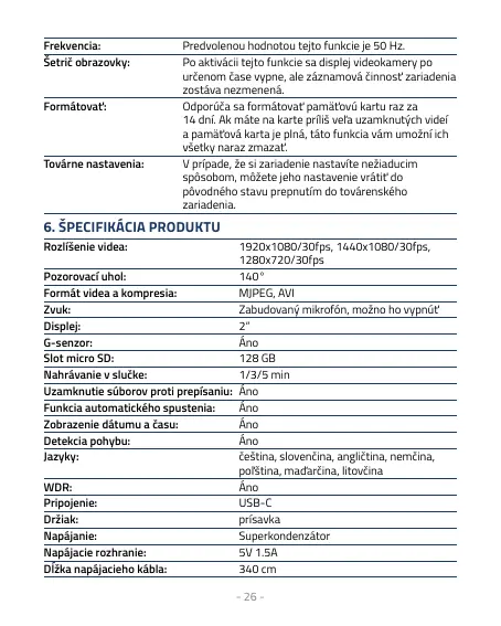 určenom čase vypne, ale záznamová činnosť zariadenia