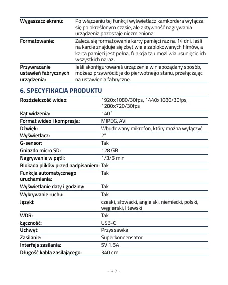 6. SPECYFIKACJA PRODUKTU