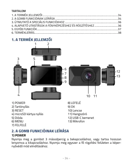 2. A GOMB FUNKCIÓINAK LEÍRÁSA ...................................................................................................34