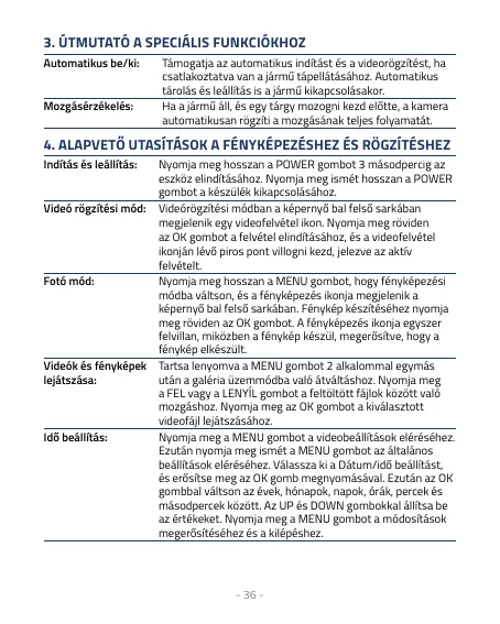 3. ÚTMUTATÓ A SPECIÁLIS FUNKCIÓKHOZ