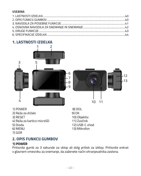 1. LASTNOSTI IZDELKA ..........................................................................................................................40