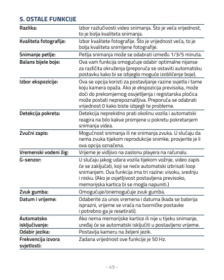 Petlja snimanja može se odabrati između 1/3/5 minuta.