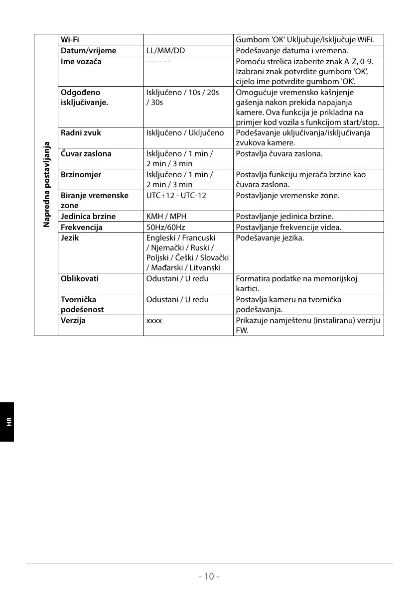 Frekvencija 50Hz/60Hz Postavljanje frekvencije videa.