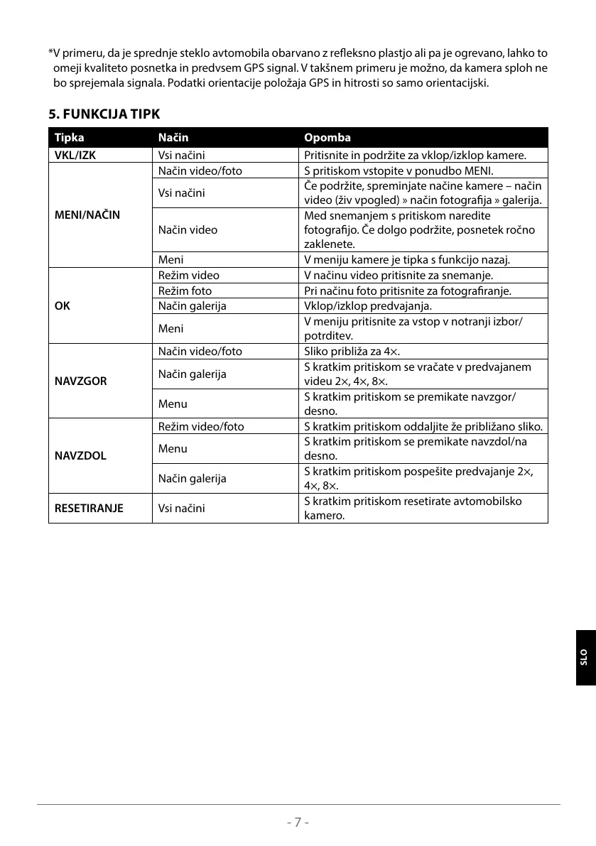 bo sprejemala signala. Podatki orientacije položaja GPS in hitrosti so samo orientacijski.