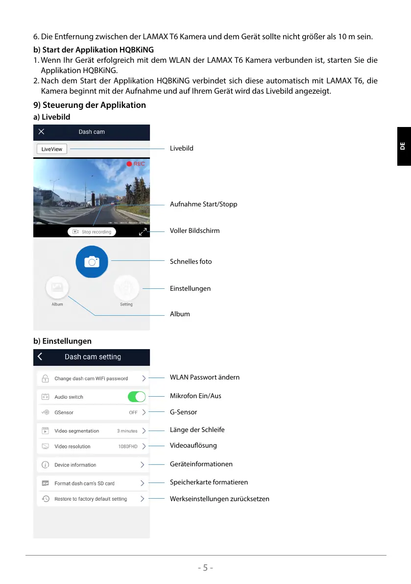 6. Die Entfernung zwischen der LAMAX T6 Kamera und dem Gerät sollte nicht größer als 10 m sein.