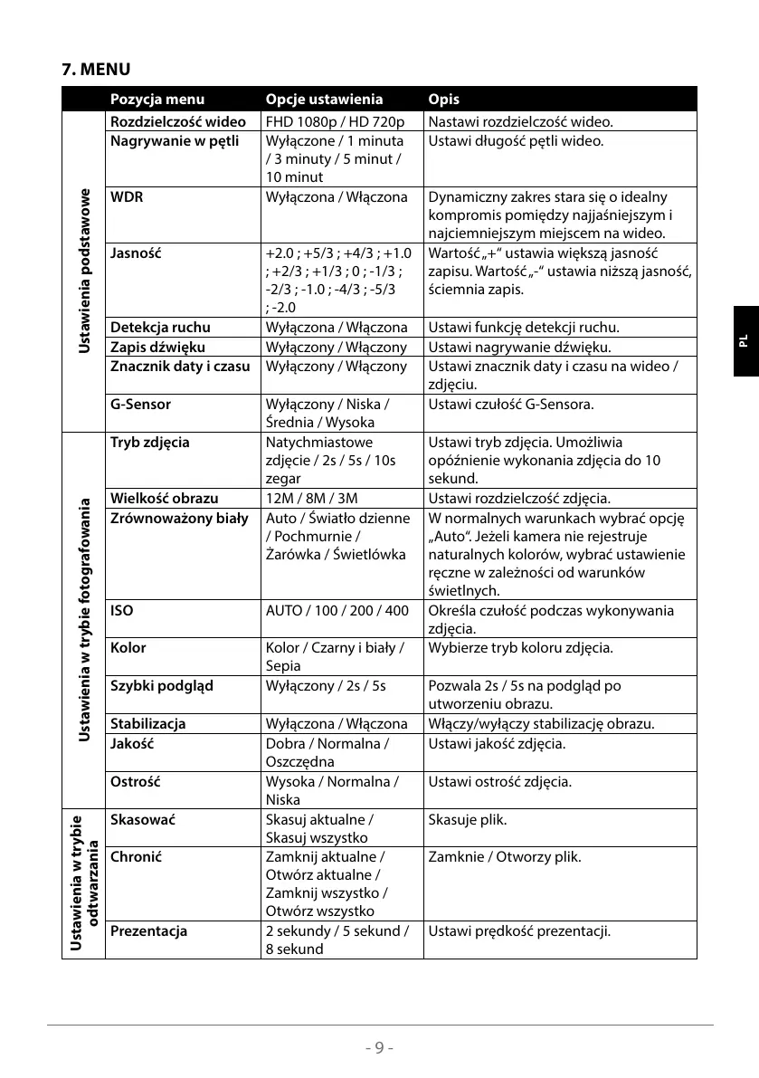 Rozdzielczość wideo FHD 1080p / HD 720p Nastawi rozdzielczość wideo.