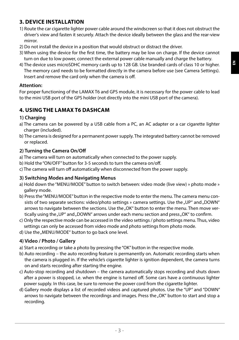 For proper functioning of the LAMAX T6 and GPS module, it is necessary for the power cable to lead