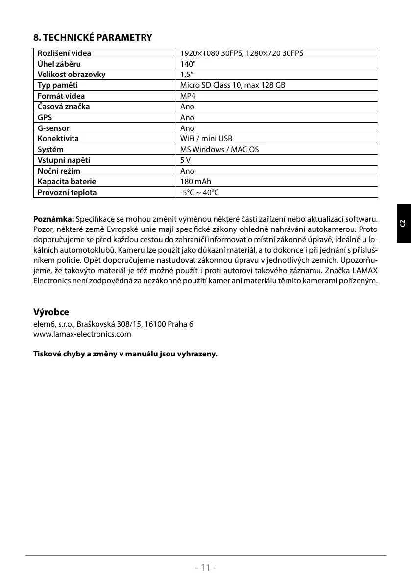 Pozor, některé země Evropské unie mají specické zákony ohledně nahrávání autokamerou. Proto