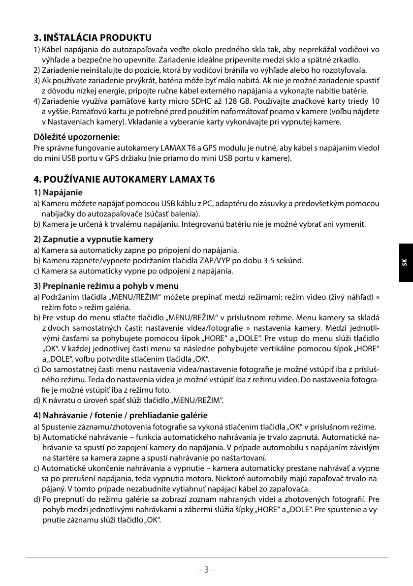 4. POUŽÍVANIE AUTOKAMERY LAMAX T6