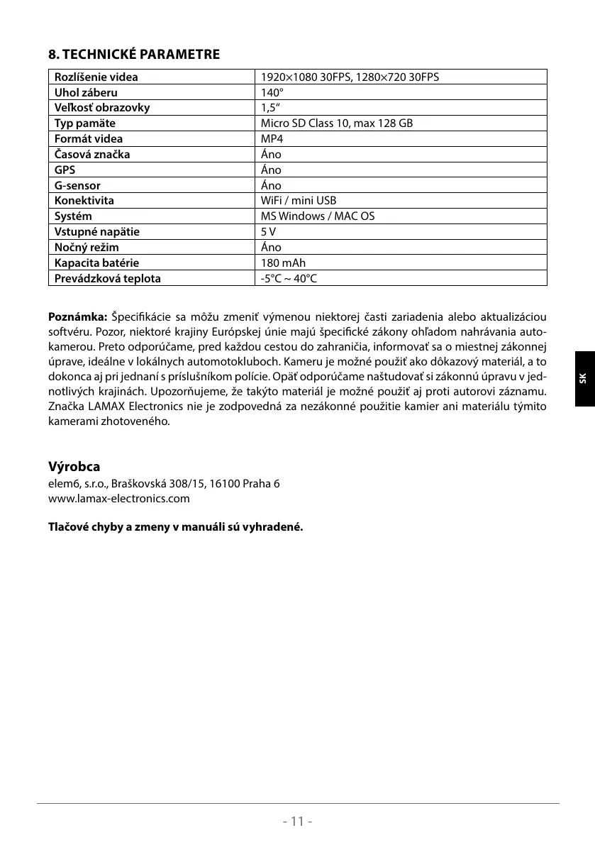 Značka LAMAX Electronics nie je zodpovedná za nezákonné použitie kamier ani materiálu týmito