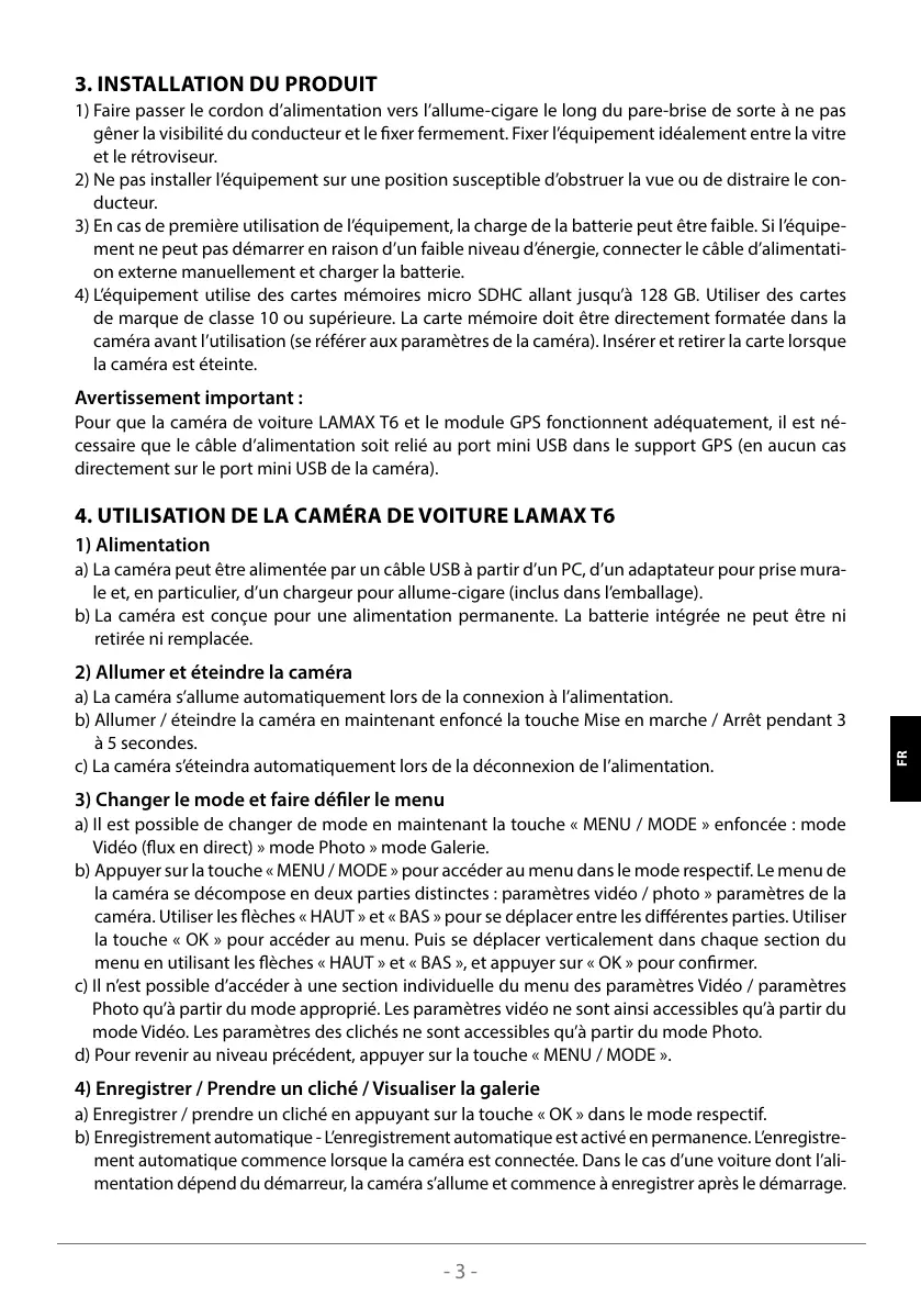 4. UTILISATION DE LA CAMÉRA DE VOITURE LAMAX T6