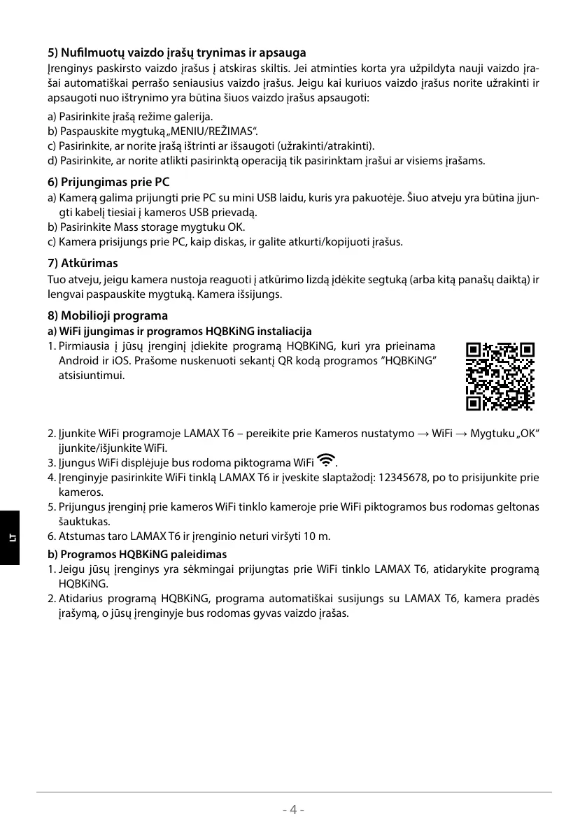 a) WiFi įjungimas ir programos HQBKiNG instaliacija