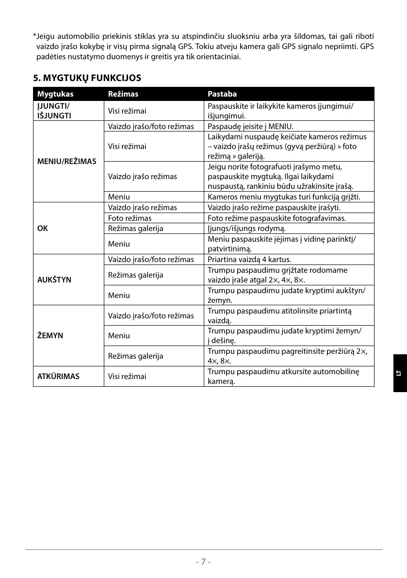 vaizdo įrašo kokybę ir visų pirma signalą GPS. Tokiu atveju kamera gali GPS signalo nepriimti. GPS