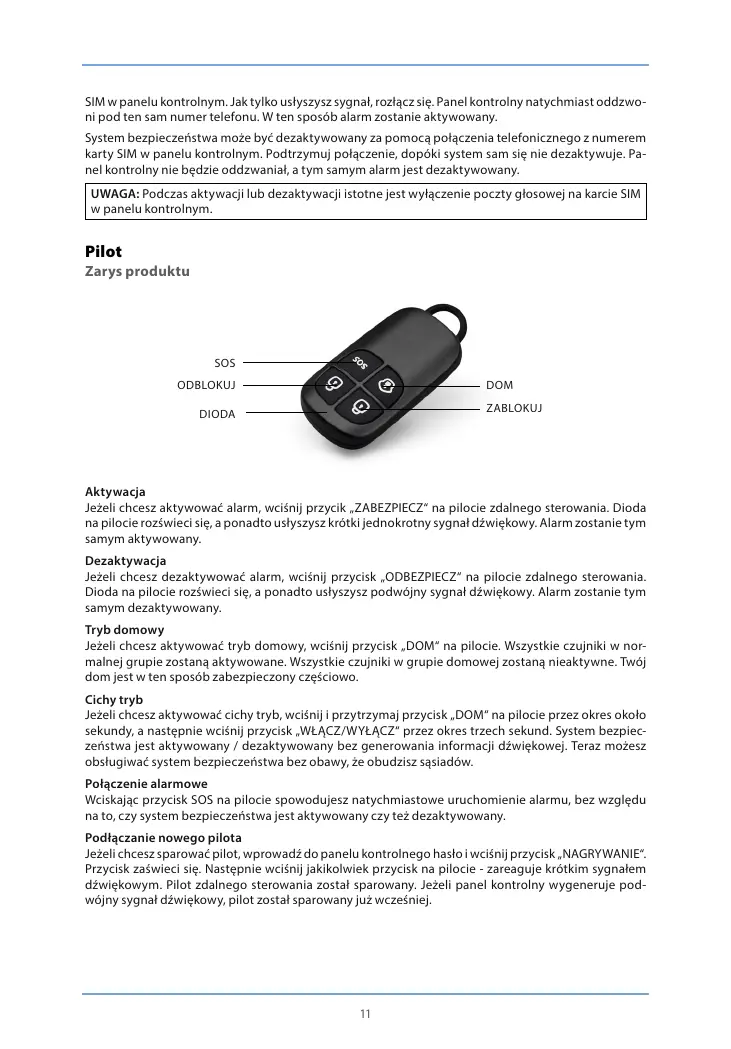 Wciskając przycisk SOS na pilocie spowodujesz natychmiastowe uruchomienie alarmu, bez względu