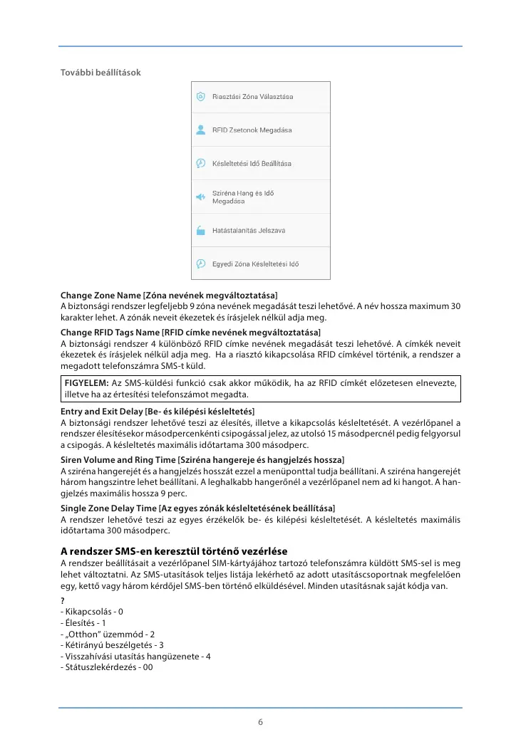 lehet változtatni. Az SMS-utasítások teljes listája lekérhető az adott utasításcsoportnak megfelelően