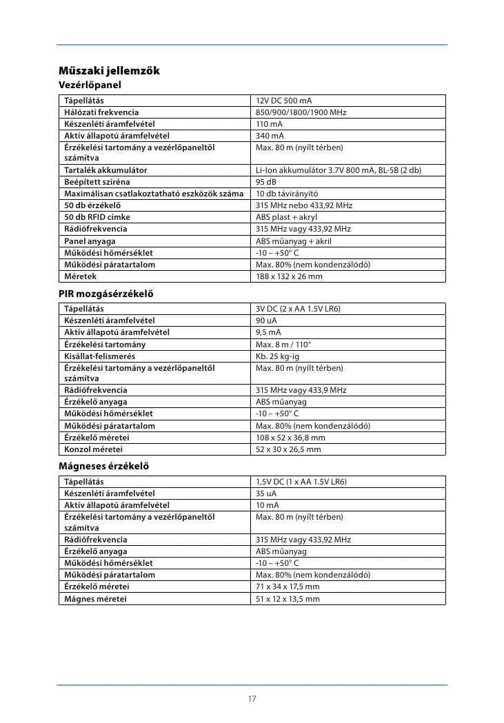 Műszaki jellemzők