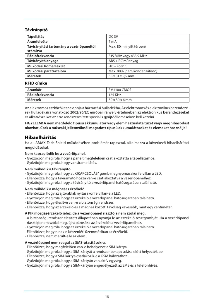 Ha a LAMAX Tech Shield működésében problémát tapasztal, alkalmazza a következő hibaelhárítási