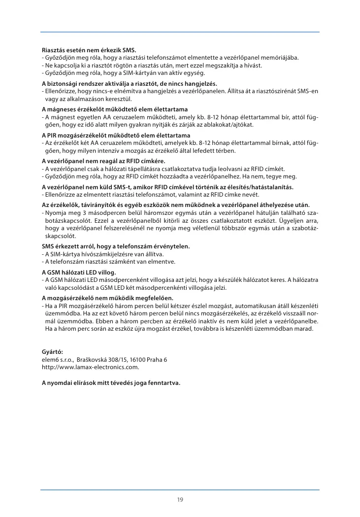 - Ne kapcsolja ki a riasztót rögtön a riasztás után, mert ezzel megszakítja a hívást.