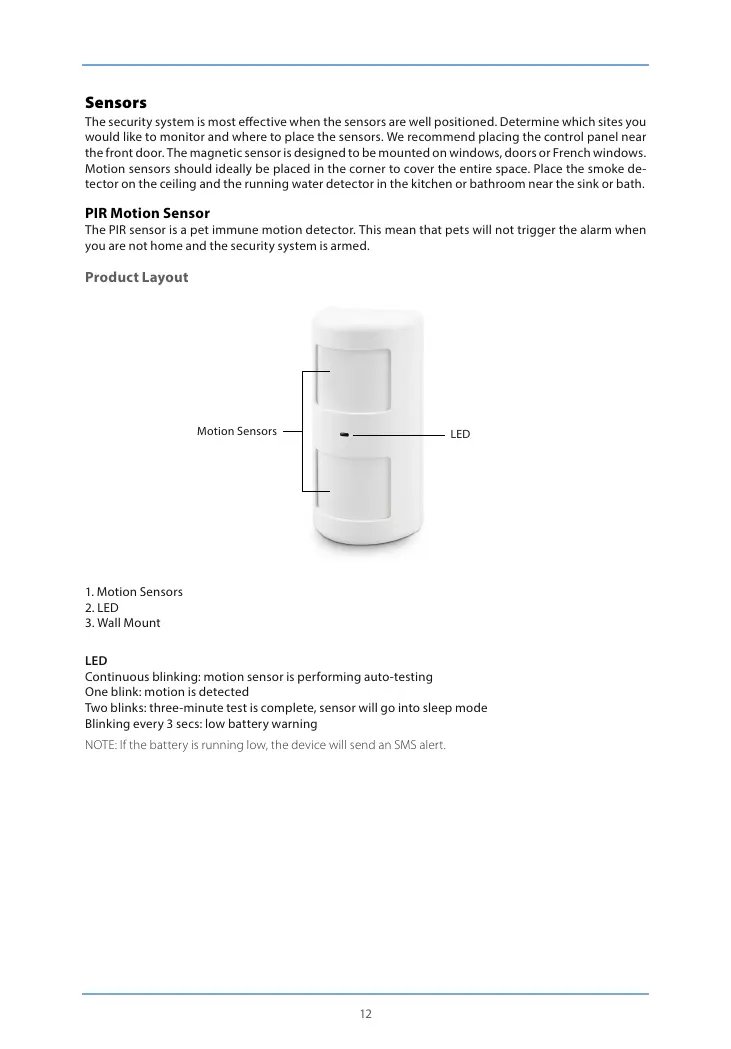 The PIR sensor is a pet immune motion detector. This mean that pets will not trigger the alarm when