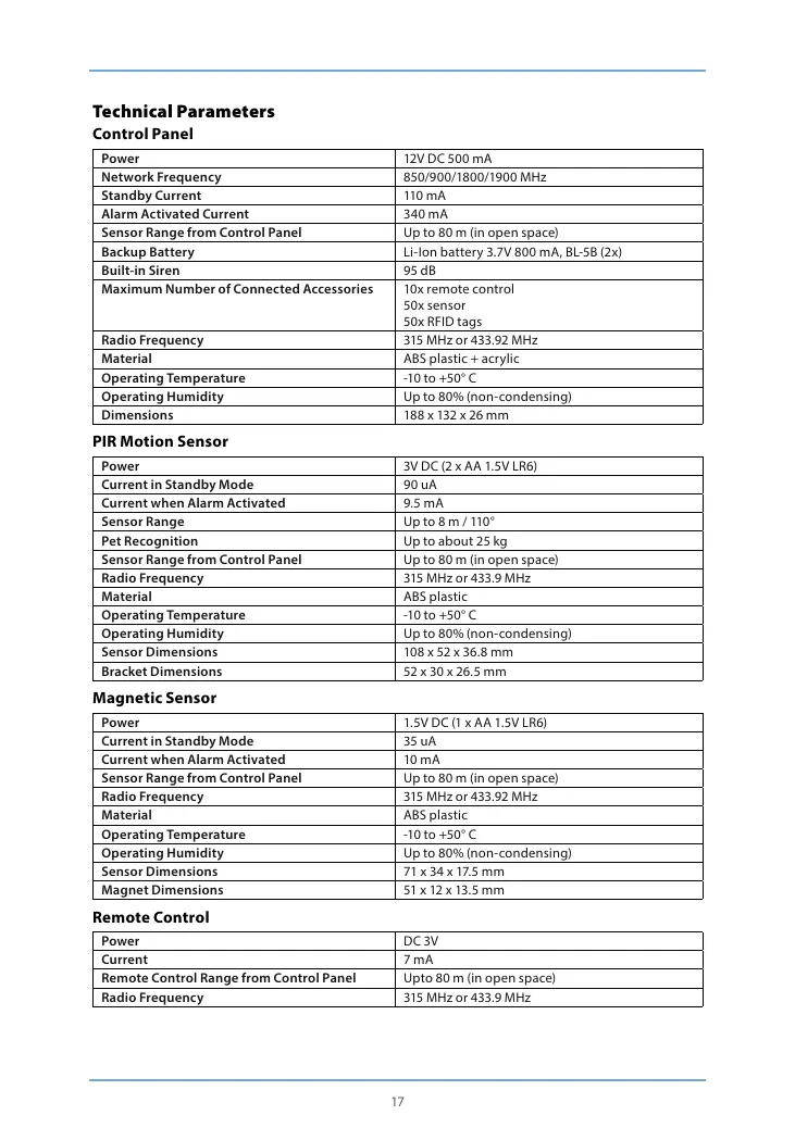 Sensor Range from Control Panel Up to 80 m (in open space)