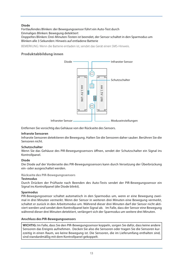 viert werden und sendet dem Kontrollpanel kein Signal ab. Im Falle, dass der Sensor eine Bewegung