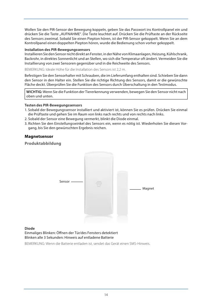 des Sensors zweimal. Sobald Sie einen Piepton hören, ist der PIR-Sensor gekoppelt. Wenn Sie an dem