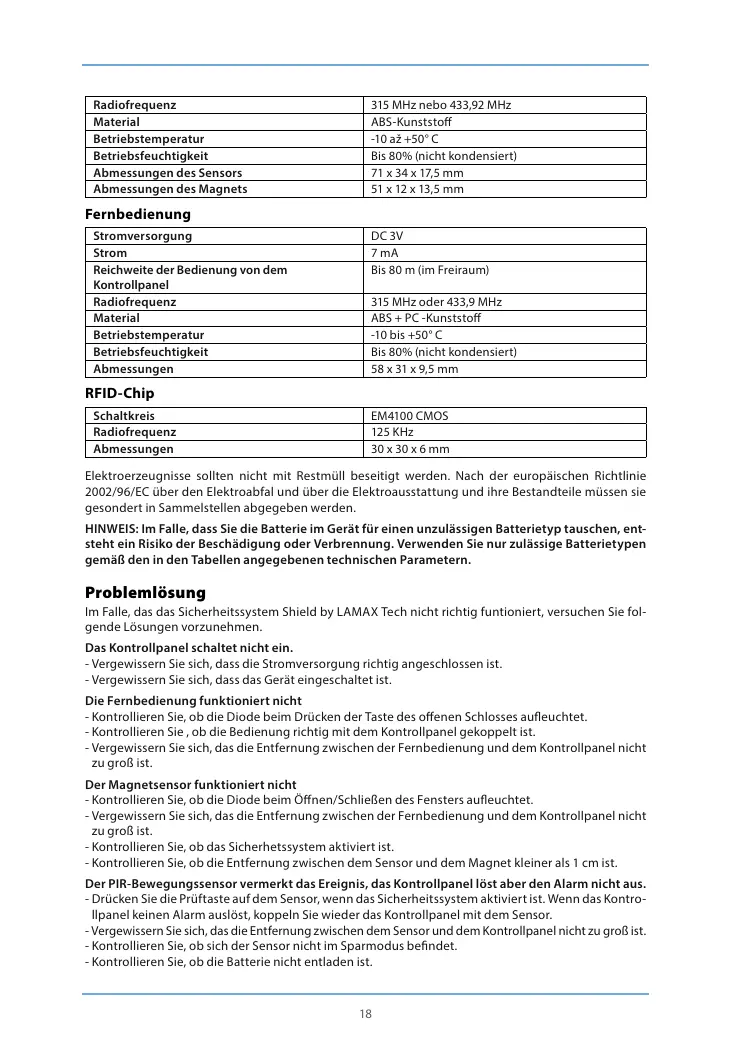 Im Falle, das das Sicherheitssystem Shield by LAMAX Tech nicht richtig funtioniert, versuchen Sie fol-