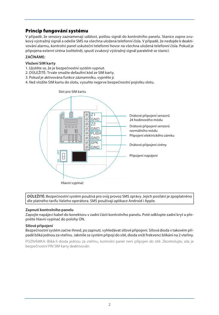 DŮLEŽITÉ: Bezpečnostní systém používá pro svůj provoz SMS zprávy. Jejich posílání je zpoplatněno