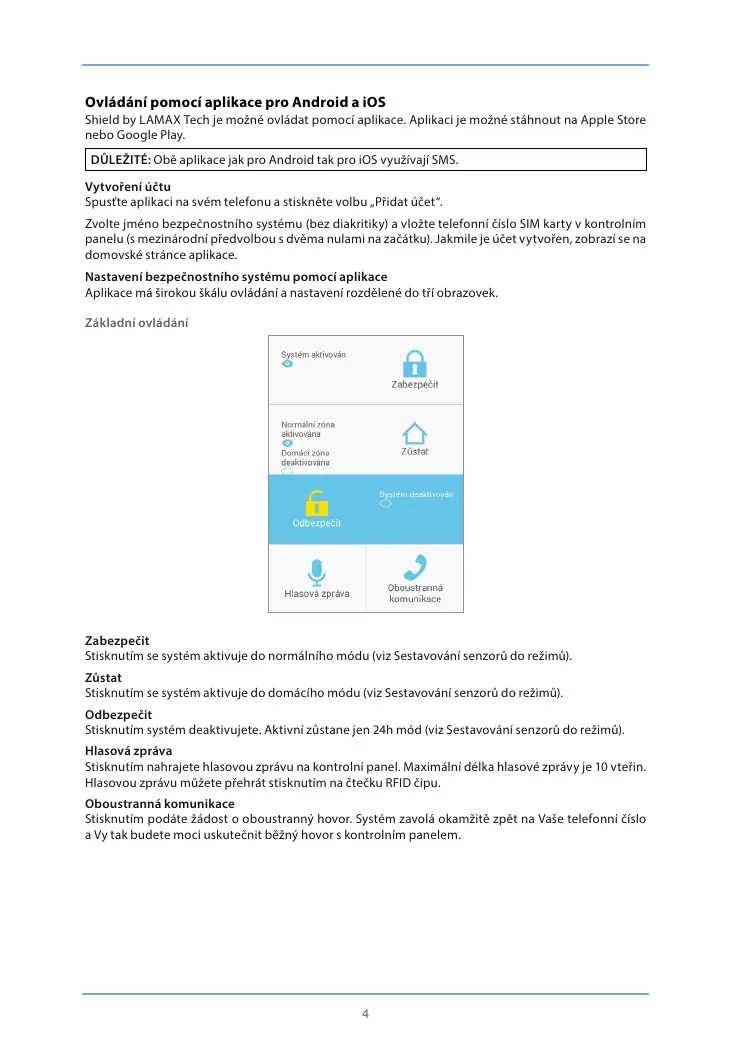 DŮLEŽITÉ: Obě aplikace jak pro Android tak pro iOS využívají SMS.